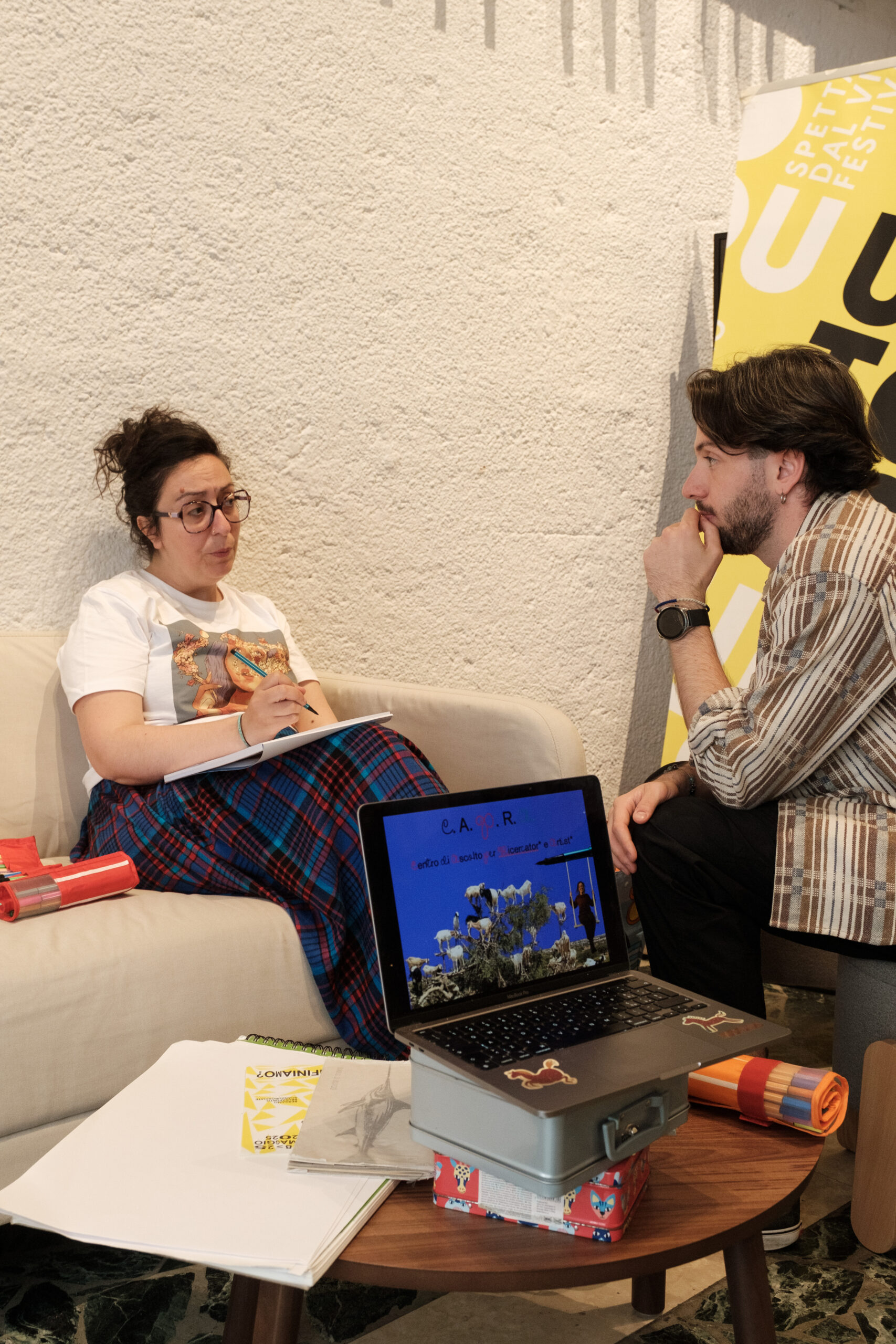 È ospitato da festival e spazi che desiderano prendersi cura di chi crea.